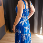 Confeccionado em uma base de poliéster com elastano, o conjunto oferece um toque suave e uma elasticidade que garante o ajuste ideal ao corpo. O tecido leve proporciona um caimento fluido, enquanto a estampa exclusiva em tons de azul e branco traz um ar refrescante e atemporal, unindo conforto e estilo em uma única composição.